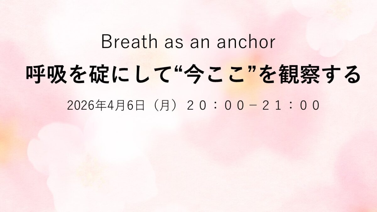 イベント・講座情報 お知らせ マインドフルネス瞑想会~呼吸を碇にして”今ここ”を観察する 2026年3月12日 吉田典生 ◆開催日時:4月6日(月)20:00-21:00 詳細、お申込みはこちらからお願いします。