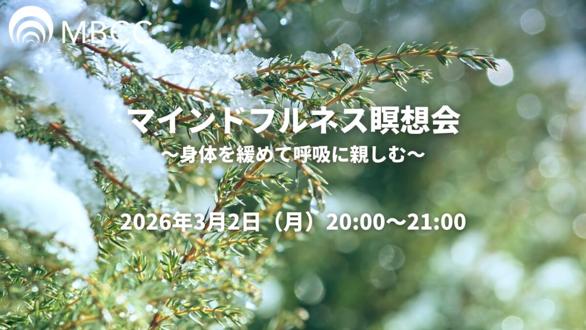 プロコーチ養成スクール【MBCC=マインドフルネス・ベースド・コーチ・キャンプ】による月例瞑想会です。